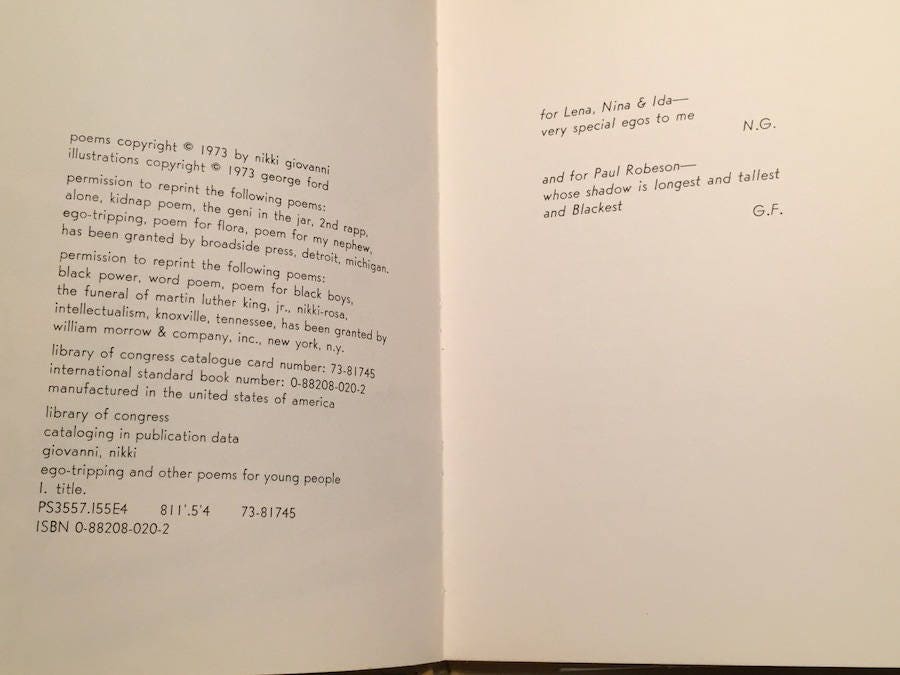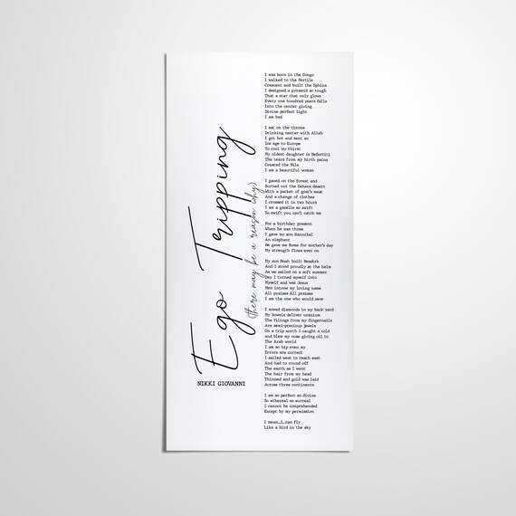 In this poem, writer langston hughes explores the relationships between women, men, and cars within the context. Nikki giovanni's poems were completely different from anything i'd studied in school. In summary, the poem ego tripping was used to empower the black female. Watch the video for ego tripping from nikki giovanni's the reason i like chocolate for free, and nikki giovanni has written more than two dozen books, including volumes of poetry, illustrated giovanni then wrote poems for children throughout the next decade.