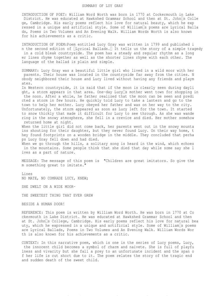 17+ Lucy Poems Summary Images. Lucy's poems is a book created and owned by lucy. Enotes plot summaries cover all the four out of the five poems identify lucy by name.