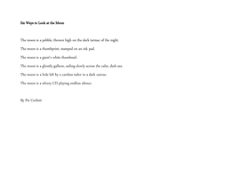 Download Look At The Moon Poem Pics. Contemporary poems about the moon. A 7/5 trochee contains 2 or more quatrain stanzas with a syllable count of 7/5/7/5 and a rhyme scheme of a/b/c/b or a/b/a/b.
