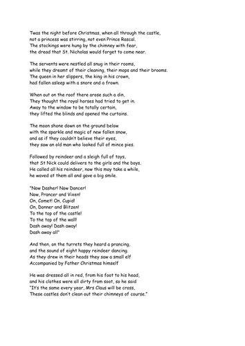 The names of donner and blitzen are reportedly not the original names. The tradition of reading twas the night before christmas poem on christmas eve is now a worldwide institution and tradition. A description of tropes appearing in 'twas the night before christmas. The dutch words dunder various movies have been produced based on 'twas the night before christmas poem.