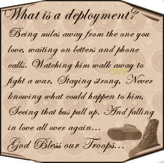 Get Military Deployment Poems Pics. Ranked poetry on deployment, by famous & modern poets. This soldier poem taken from the wall usa site.