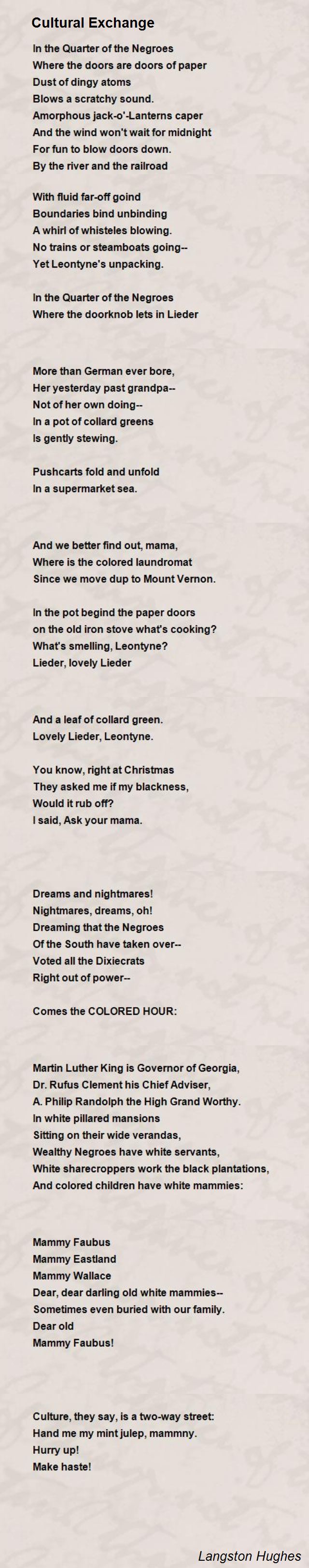 View Langston Hughes Poems About Family Pics. Langston hughes poems, quotations and biography on langston hughes poet page. Hughes poetry portrayed what life was like for african americans, from their suffering to their love of music.