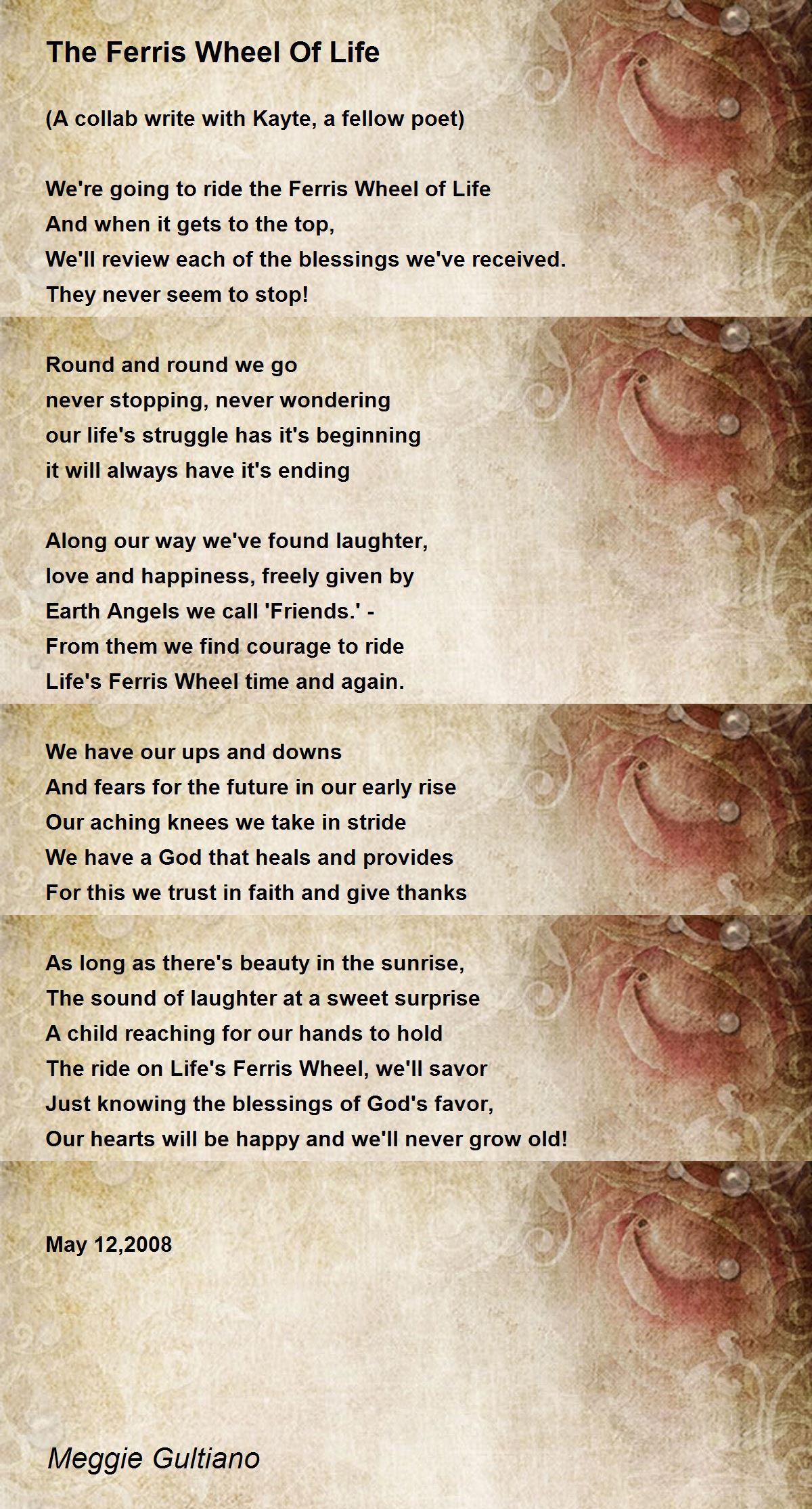 View Life Is Like A Wheel Poem Background. Like a clock whose hands are sweeping past the minutes on it's face and the world is like an apple whirling silently in space like the circles that you find in the windmills of your mind. Poems about wheel at the world's largest poetry site.