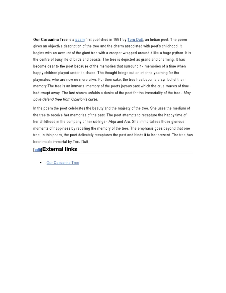 View Our Casuarina Tree Poem Pdf Images. Ba honours english course name: Toru dutt was fond of writing on indian themes even while she lived in england.